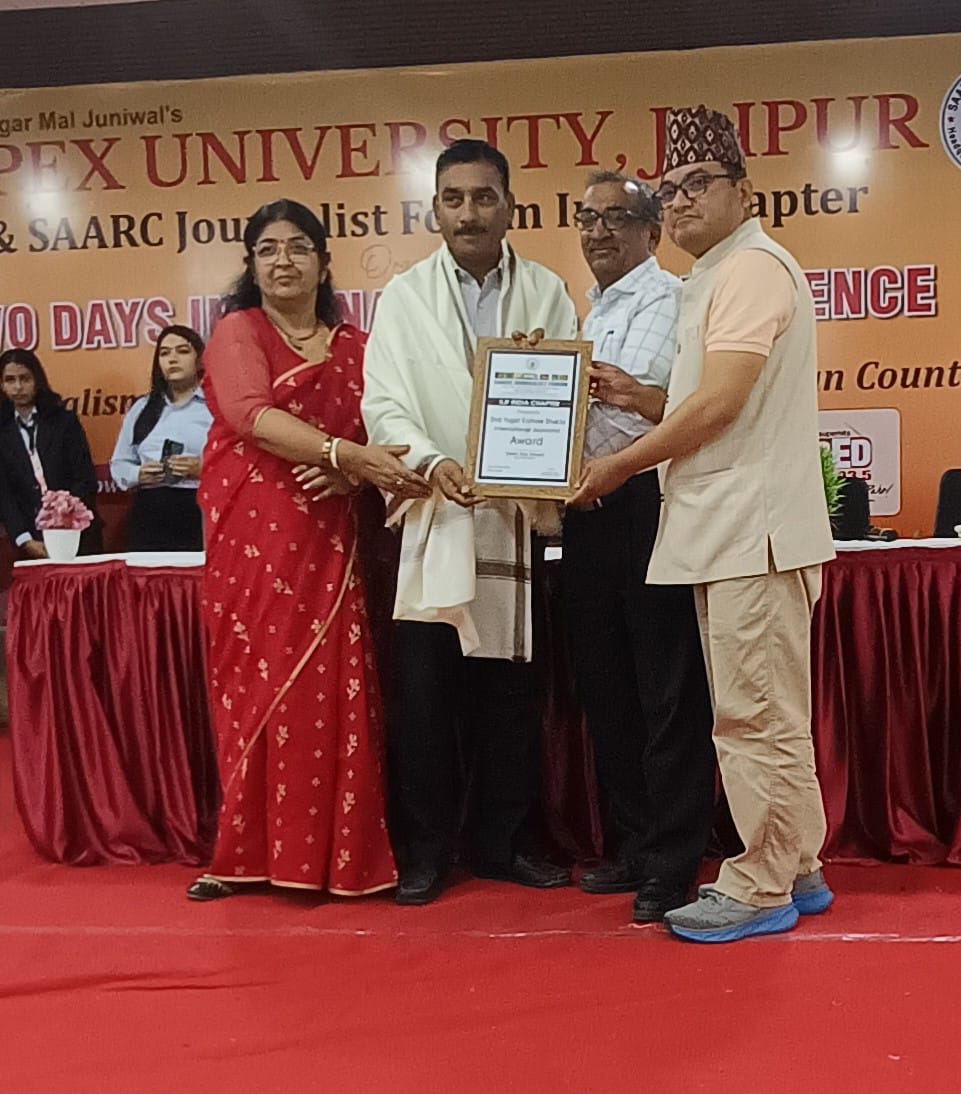 Jaipur/ Jodhpur. A two-day international conference and second Pandit Jugal Kishore Shukla International Journalism Award ceremony was organized under the joint aegis of Apex University and SAARC Journalist Forum India Chapter. The role of journalism in establishing peace and cooperation in South Asian countries was discussed in the ceremony. A manifesto was released on this occasion. It focused on peace and peace journalism in South Asia, positive news, reporters without borders. Indian chapter president Anirudh Sudhanshu and representatives from various states were present in the program along with international member of Indian chapter Smita Mishra. SAARC International President Raju Lama presided over the program. In the second edition of Pandit Jugal Kishore Shukla International Journalism Award started by SAARC Journalist Forum India Chapter since last year, journalist Sheikh Raees Ahmed of Jodhpur, Rajasthan was awarded the second International Jugal Kishore Shukla Journalism Award for journalism in regional language. For journalism in Sanskrit language, Apex University Vice Chancellor Prof. Somdev Shatanshu was awarded a special award. In the teaching category, Prof. Sanjeev Bhanawat, Prof. Vandana Pandey, Dr. Garima Srivastava, in the journalism category, Sayeed Arif of Hyderabad in Urdu language, Muhammad Yusufuddin Qadri in English language and Rahul Samantha Sri Lanka in foreign language category, (print) Arif Ansari Nepali language (electronic), Dipendra Prajapati (Nepali language) in print category were awarded with shawl and certificate.